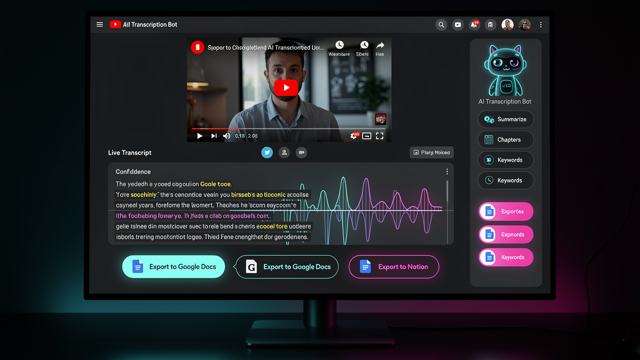 Скачивание видео, спич-то-текст, саммари, экспорт в Google Docs и notion.